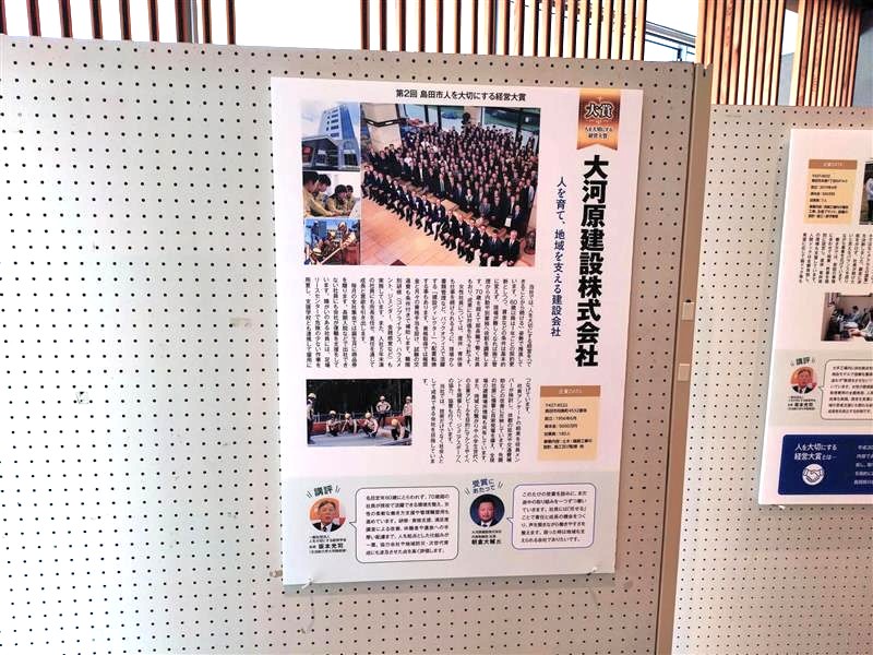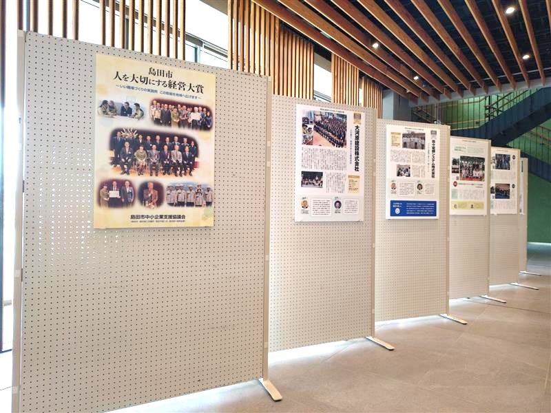 先日、当社が受賞いたしました「第二回 島田市 人を大切にする経営大賞」に関連するパネル展が、現在 島田市役所 本庁舎1階ロビー にて開催されています。